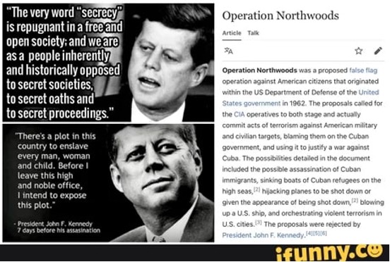 For example, one of many, many CIA, FBI, NSA operations launched to control, enslave and kill We the People is called Operation Northwoods. Wikipedia has this definition of Operation Northwoods—