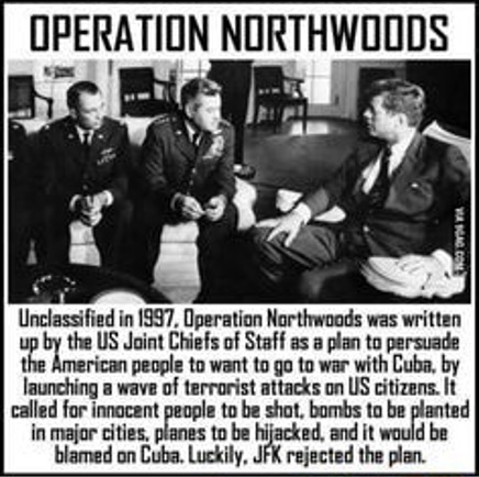 For example, one of many, many CIA, FBI, NSA operations launched to control, enslave and kill We the People is called Operation Northwoods. Wikipedia has this definition of Operation Northwoods—