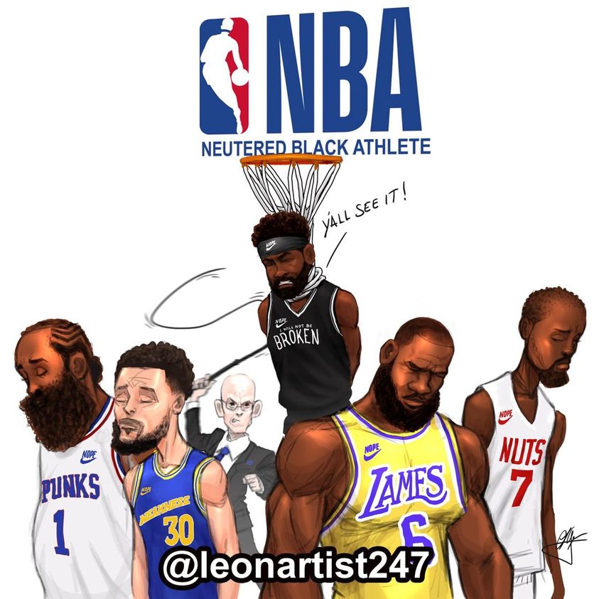 Kyrie Irving vs. The NBA Jewish Slavemasters and their Sports Media Overseers—Note whenever White Supremacists want to kill the career of a Black man (or women, i.e., Any Christian, Conservative, Critical Thinker including—Candace Owens, Donald Trump, all recent Republican Presidents since Abraham Lincoln, the Republican Party), they shout the Antisemitism trope on the 90% of the media outlets that the Rothschild Khazarian Mafia and Rockefellers control and everyone else falls in line (without requiring EVIDENCE). It reminds me of Slavery times when the master would beat a slave not because he did anything wrong, but to send a message of FEAR to all the rest of the slaves.
