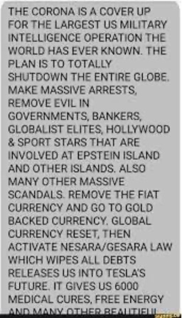 This also ties in nicely with an important statement made by Alex Jones of InfoWars.com who said in his April 9, 2020 monologue, “The Coronavirus is just good old fashion Eugenics – Personalize the thousands, watch tens of millions die.”