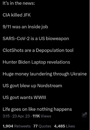 Don’t believe me? Do your own research. A good starting point is put search terms of one word or a phrase at the informative website—www.BeforeItsNews.com. WARNING! Prepare to be Redpilled and to have your mind blown!