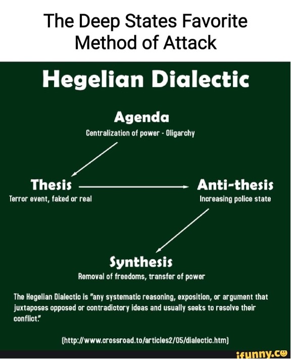In other words, as I wrote many, many times before to understand hidden history, hidden politics behind the Shadows think in terms of Hegelian Dialectic = To establish the Satanic New World Order —1) Create the PROBLEM, 2) Fund the REACTION, 3) Mandate the [Final] SOLUTION.