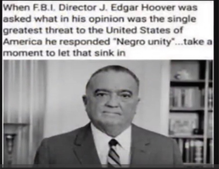 Socrates: Speaking of the FBI, in order to keep Black people ignorant about their history, here is another fact that isn’t taught in your propaganda public, private or charter schools – FBI Director, J. Edgar Hoover (Director: 1925-72), who we now understand was an undercover Black man passing for White all of his life and whose great-grandfather and grandfather lived in a Black neighborhood and were both listed in the D.C. census as “coloured”, infamously stated—“There will never be another Black Messiah unless WE create him.”