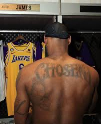 LeBron James (NBA Superstar, has a large Boule symbol tattooed on his chest and the Messianic epigram: “CHOSEN” meaning ‘The Chosen One’ = Antichrist across his back).