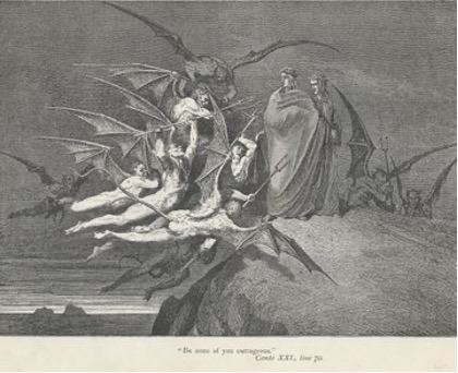 *N.B.: Illustrations by Gustave Dore of Dante’s Inferno dealing with 3 of the 9 Deadly Sins (e.g., Avarice, Lust, Greed).